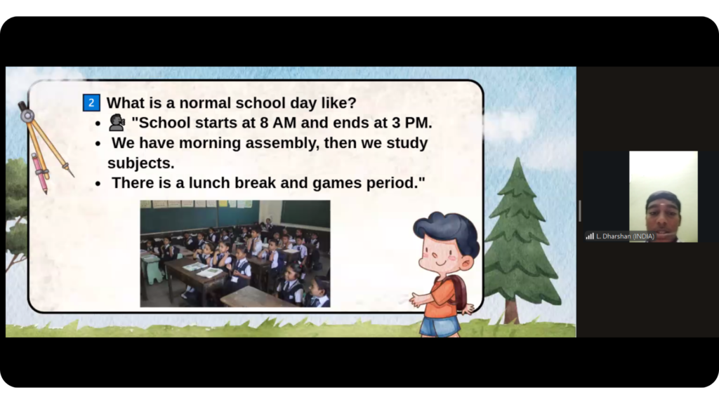 Teacher Gisel Crespo from Argentina wanted her students to see what school looks like beyond their own classroom. To do that, she brought together Teacher Jhansi from India and Teacher Olenka from Ukraine for a live exchange built around simple but meaningful questions: What does a school day look like for you? Do you wear a uniform? What celebrations do you have? These questions opened up real conversations between students — and while they shared, they also practiced their English and their confidence speaking to an international audience. Below you will find the full story of how it all came together.