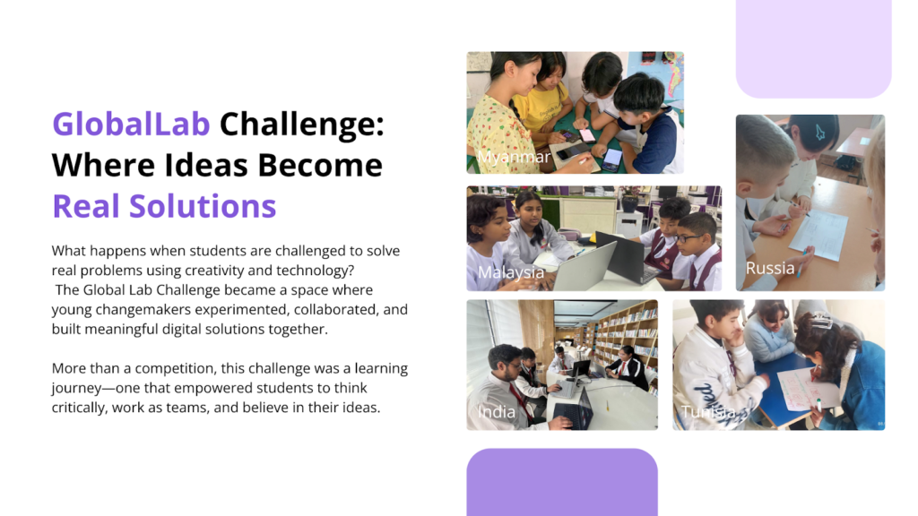- My Robot, My Helper (June) explored artificial intelligence and innovation, challenging students from India and Bangladesh to design creative robot helpers that could solve real problems in their schools or communities, sharing their ideas globally through drawings, digital designs, or models.